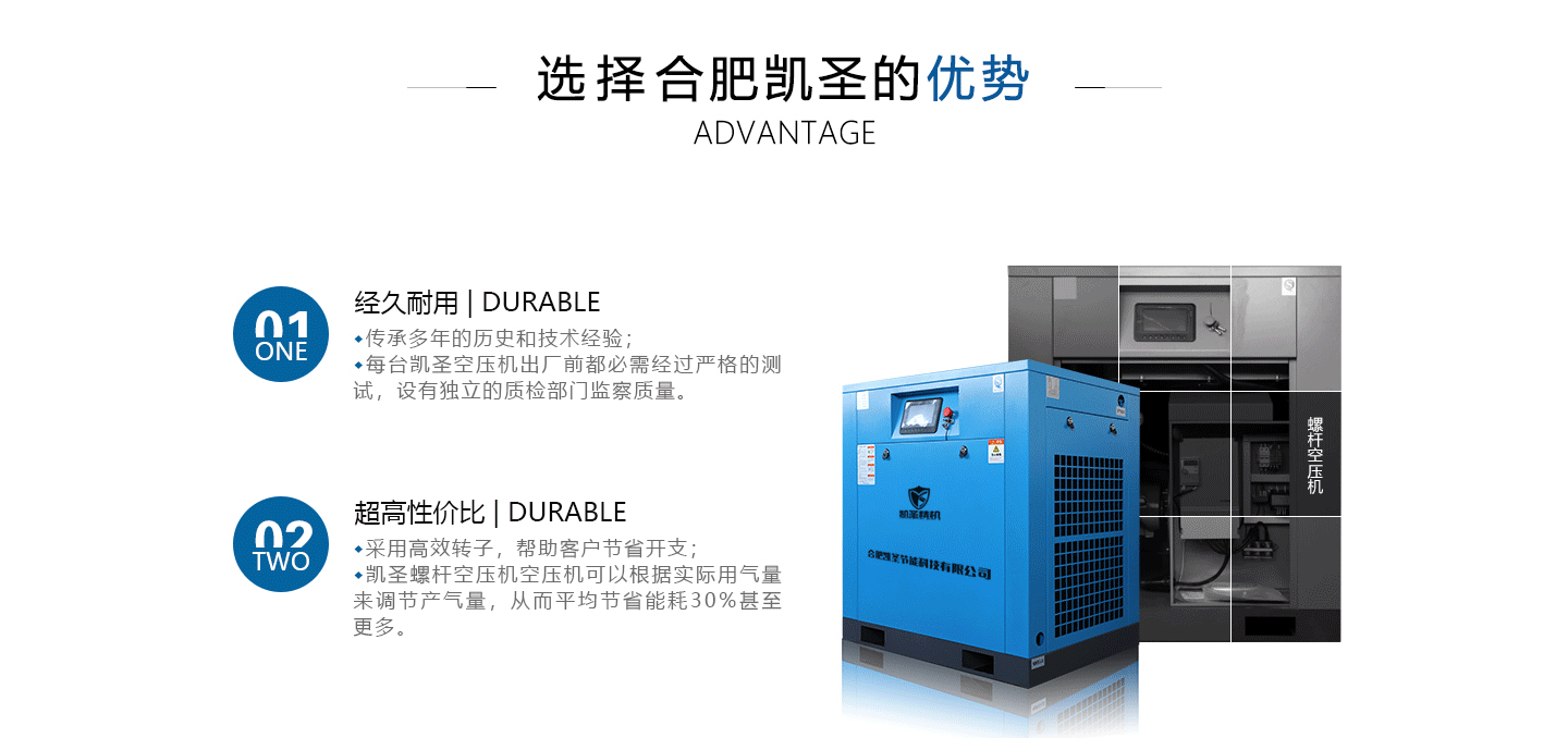 合肥凱圣節(jié)能科技有限公司是從事永磁變頻螺桿壓縮機系統(tǒng)的設計、制造、安裝、調試、維修與一體的公司。 在多年的螺桿空壓機研發(fā)與推廣歷程里,凱圣聚集和培養(yǎng)了大量壓縮機技術設計和管理人員,迅速發(fā)展成為集研究、生產、銷售、服務等環(huán)節(jié)為一體、嚴格按照標準執(zhí)行的企業(yè),公司成立開始,即以滿足客戶的實際需求為己任,大力開拓國內外節(jié)能型空壓機市場,并始終保持創(chuàng)新精神,全力研發(fā)更為節(jié)能的螺桿式空壓機,努力站在空壓機節(jié)能領域的排頭位置。 應用范圍:公司產品廣泛應用于機械、輕工、紡織、食品、石油、化工、冶金、礦山、電力、城建、醫(yī)學研究和科研等各行業(yè)中,將為節(jié)約能源做出巨大貢獻。公司秉承“信譽至上,...